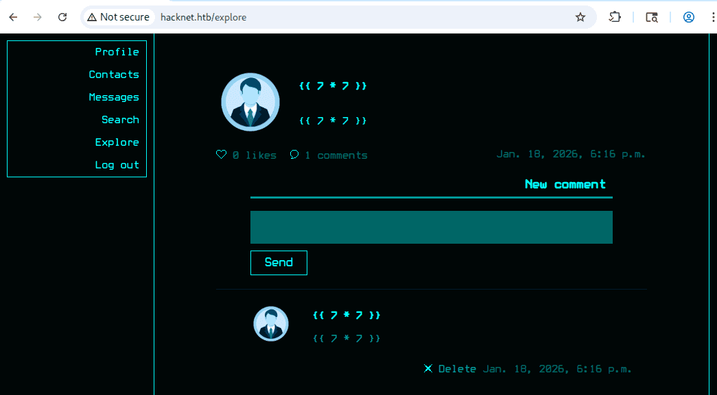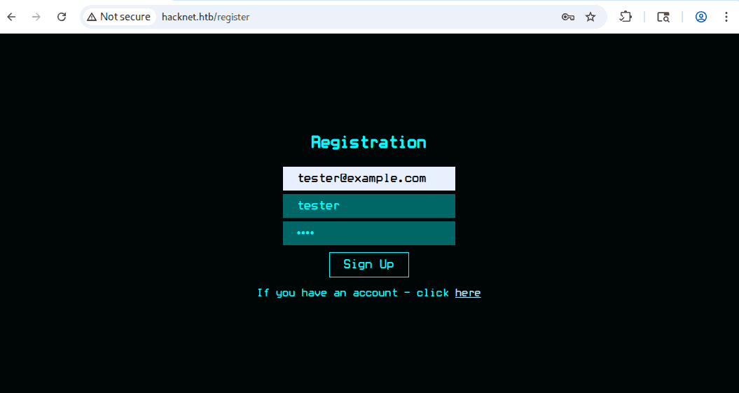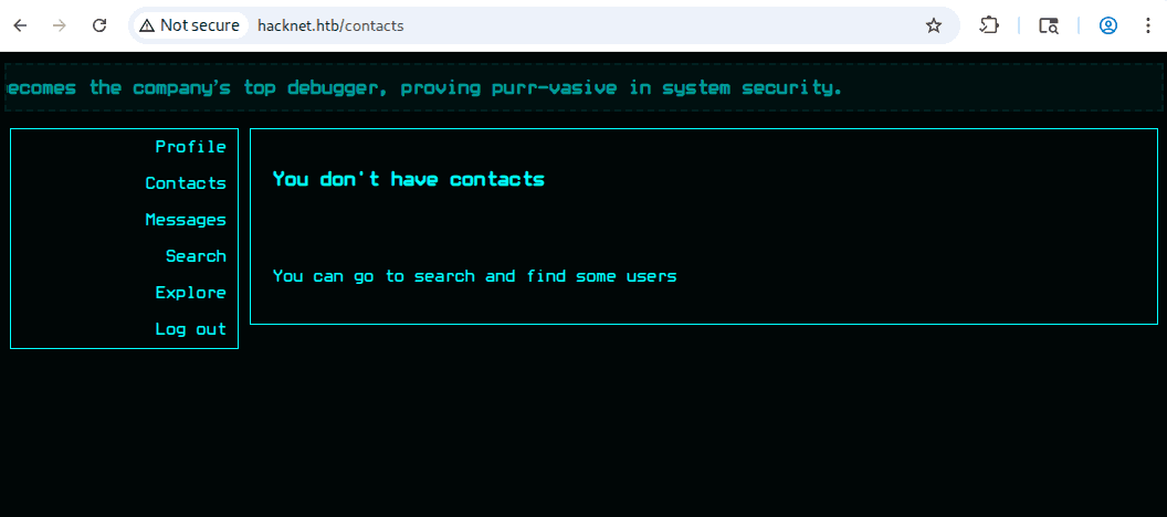 hacknet.htb to sieć społecznościowa dla hackerów, jak możemy zobserwować na stronie głównej: