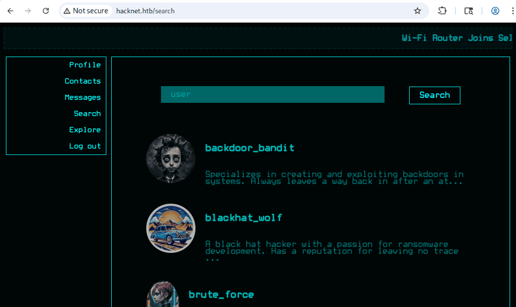 /search- z wyszukiwarką użytkownikówhacknet.htb: