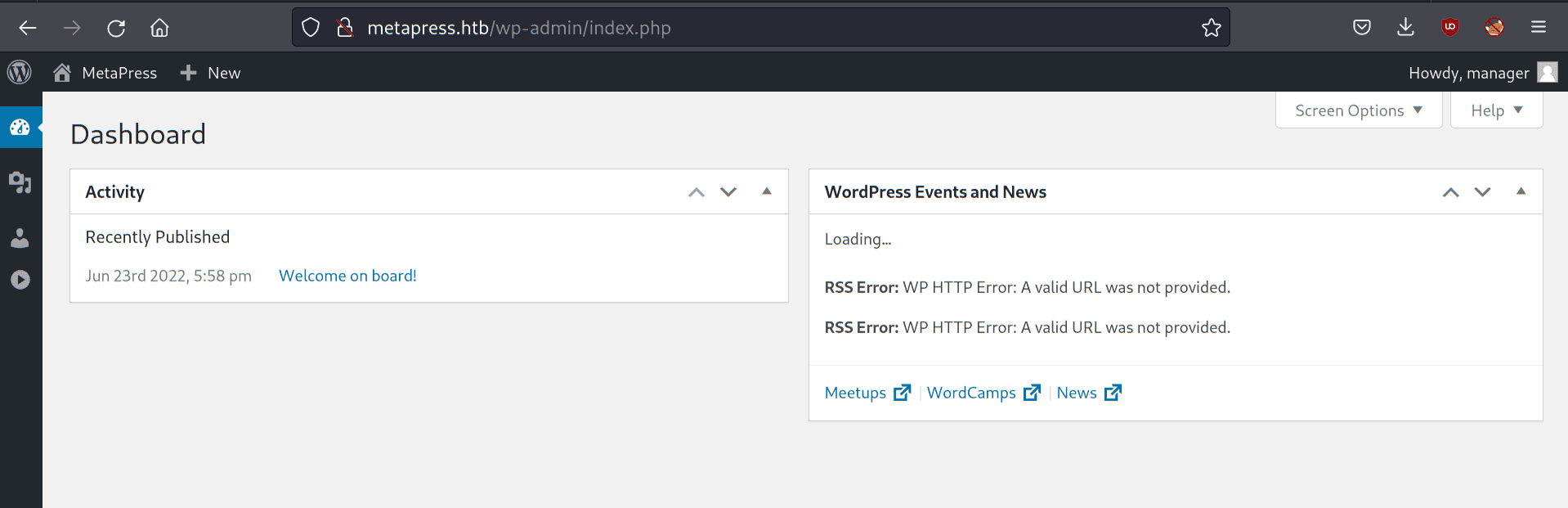 Na stronie głównej widzimy link do http://metapress.htb/events/, który prowadzi do poniższej strony: