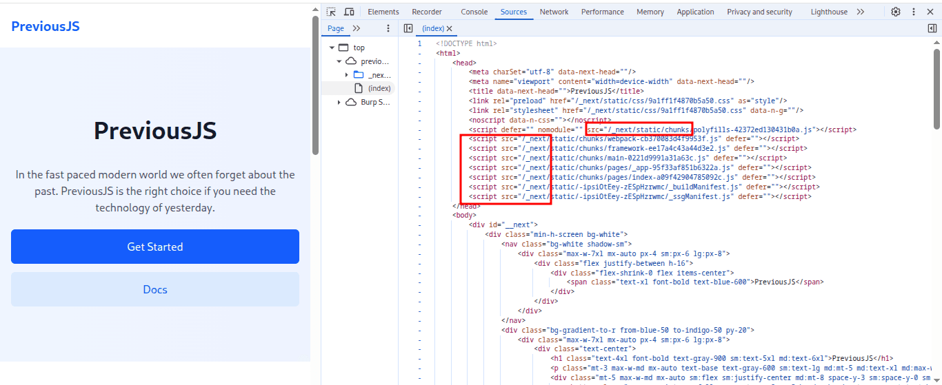 Powinniśmy teraz przyjrzeć się kodowi źródłowemu działającej aplikacji, być może znajdziemy tam coś, co przyda się w dalszej eksploitacji. Ale żeby tego dokonać muimy znać typową strukturę aplikacji napisanej w next.js.